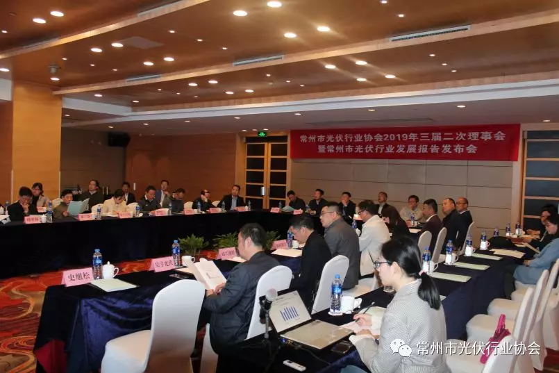 4月30日上午,常州市光伏行業(yè)協(xié)會(huì )“2019年三屆二次理事會(huì )暨常州光伏行業(yè)發(fā)展報告發(fā)布會(huì )”在常州錦江國際大酒店順利召開(kāi)。會(huì )議的主題是探討光伏行業(yè)走勢,重點(diǎn)推出《常州市光伏行業(yè)發(fā)展報告2019》。常州市工商聯(lián)袁學(xué)軍副主席,市發(fā)改委、工信局、工商聯(lián)和市三會(huì )相關(guān)處室領(lǐng)導到會(huì )。23家會(huì )員單位的近40位代表參會(huì )。協(xié)會(huì )史旭松秘書(shū)長(cháng)主持會(huì )議。