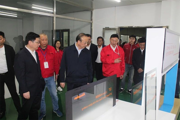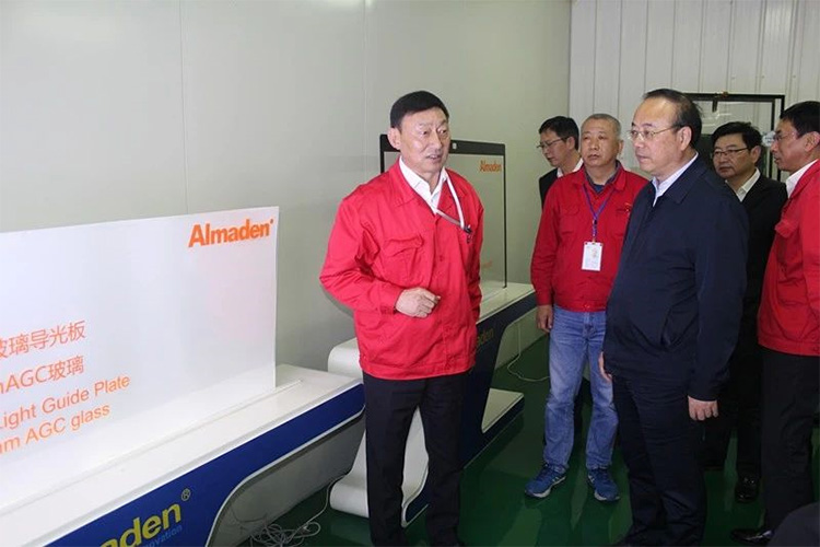 會(huì )后,張書(shū)記一行參觀(guān)了我司新型光電顯示玻璃生產(chǎn)車(chē)間,林董向張書(shū)記一行介紹了產(chǎn)品生產(chǎn)過(guò)程中各工段工藝。